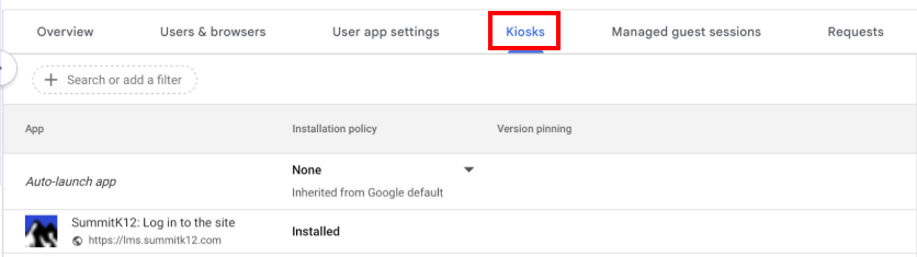 District IT Administrators must configure the Summit K12 Learning Management System (LMS) in Kiosk Mode on student Chromebooks. This setup ensures a secure and focused environment for student assessments and learning activities. This guide assumes that Chromebooks have already been enrolled in the district's organization.